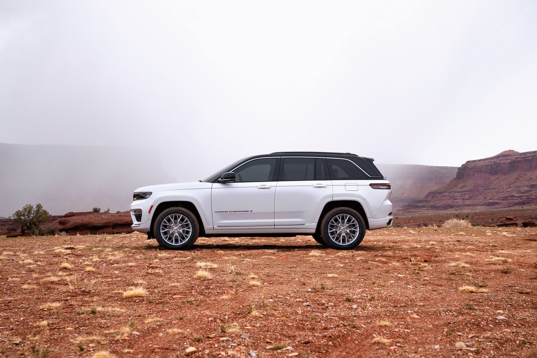 The midsize Jeep Grand Cherokee is the more sophisticated variant, which leans into refinement while retaining serious capability. Powertrains include a 3.6-liter V6, a 5.7-liter V8, and the 4xe plug-in hybrid that delivers instant electric torque for off-road use. Quadra-Trac and Quadra-Drive four-wheel-drive systems automatically adapt to the terrain. Available air suspension adjusts ride height for improved clearance or highway efficiency. Interior features include multiple digital displays, advanced driver assistance systems, and upscale materials.