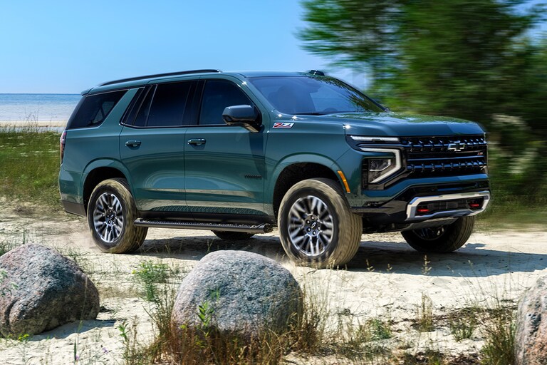 If you have a larger family or several in your carpool, the Chevy Tahoe is a fantastic choice. This full-size SUV seats up to nine passengers in its capacious cabin. It also has muscular engines and a towing capacity of up to 8,400 pounds with the right configuration.