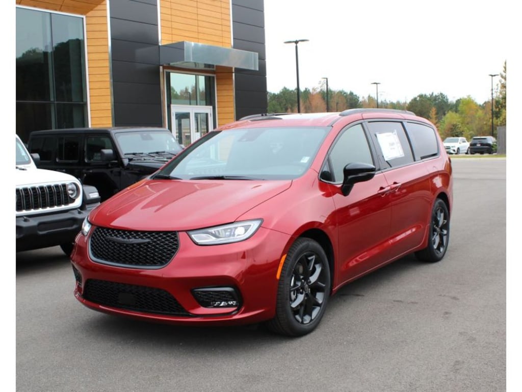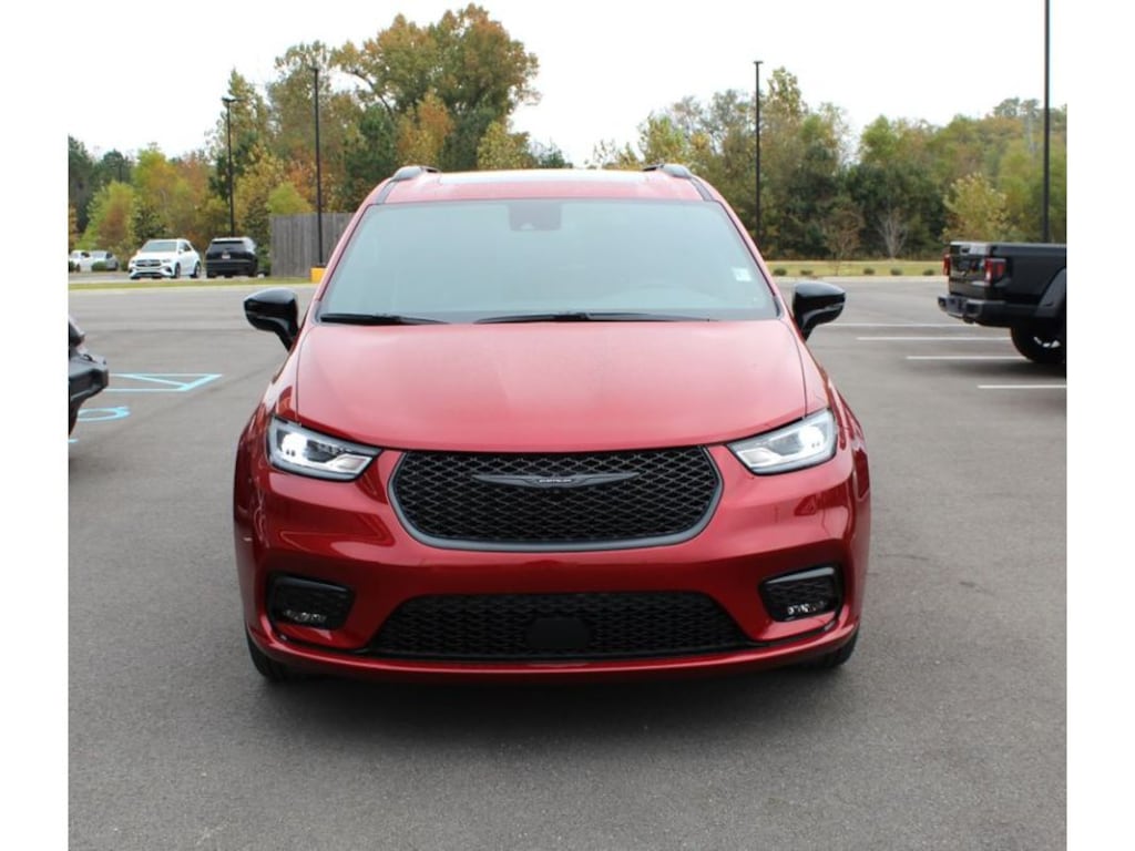 S Appearance Package: Black Day Light Opening Moldings; Premium Fascia Upper/lower Grille with Black Surround; 245/50R20 BSW AS Self-Sealing Tires; Black Stow 'N Place Roof Rack; Premium Rear Fascia Black; Nappa Leather Bucket Seats with S Logo; 20 X 7.5 S-Model Aluminum Wheels Design 1; Anodized Ink Badging; Gloss Black Exterior Mirrors; S Badge. Quick Order Package 27P. Uconnect Theater Family Group: Video USB Port; Blu-Ray/DVD Player/USB Port; Hands Free Sliding Doors; 19 Harman/kardon Speakers with Subwoofer; High Definition Multimedia Interface; Stow N Vac Integrated Vacuum; 3-Channel Video Remote Control; 2nd and 3rd Row Window Shades; Seatback Video Screens; 115V Auxiliary Power Outlet; Integrated Active Noise Cancellation; 760 Watt Amplifier; FamCAM Interior Camera; Amazon Fire TV Built-In. Red Hot Pearlcoat. **Equipment listed is based on original vehicle build and subject to change. Please confirm the accuracy of the included equipment by calling the dealer prior to purchase.**
