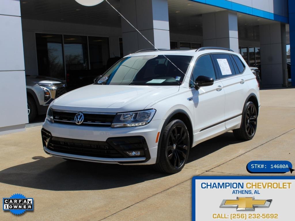 2021 Volkswagen Tiguan SE R-Line Black â" 2.0L 4-Cyl, FWD â" 43,338 Miles (Athens, AL) Elevate your daily drive with this striking 2021 Volkswagen Tiguan SE R-Line Black, located in Athens, AL. Powered by a responsive 2.0L 4-cylinder gasoline engine with front-wheel drive, this Volkswagen Tiguan delivers a balanced mix of efficiency and spirited performance. With only 43,338 miles and CARFAX 1-Owner history, this vehicle offers exceptional value and peace of mind. The SE R-Line Black package blends sporty exterior accents with a refined interior. Leather seats provide comfort for long commutes and weekend trips, while remote start adds convenience for Alabama mornings. Seamless smartphone integration comes standard with Android Auto and Hands-Free Bluetooth for calls, navigation and media streaming without distraction. Advanced safety and convenience features, quality German engineering and a clean ownership record make this Volkswagen Tiguan a smart choice for families and commuters alike. Whether navigating city streets or cruising highway routes, the Volkswagen Tiguan's composed handling and roomy cabin stand out in its class. Priced to sell, this Volkswagen Tiguan represents the best price in the area for its condition and features. Stop by in Athens, AL to see it in person or contact us to schedule a test drive. Exceptional value, modern tech, and confident performance await.